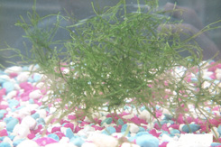 Java Moss, or Vesicularia dubyana, is used in aquariums for ground cover or as an ornamental plant. It is particularly useful in providing a place for fish to lay eggs, the dark green foliage providing the perfect hiding place for spawning. Java moss propagates by dividing existing clumps, which can function as separate entities. Java moss grows in temperatures of 20-30 °C and pH and water hardness do not affect its growth. It can even tolerate slightly brackish waters. Java moss clings to rocks and gravel and quickly creates a thick mat (Norwood, 1999). Java moss is an excellent food source and will be consumed quickly by the crayfish. Java moss also harbors colonies of microorganisms that aid in nitrification. Java moss also photosynthesizes, creating oxygen for the crayfish and removing carbon dioxide from their environment. Java moss also produces proteins that are consumed by the crayfish from nitrate in a process called assimilation.